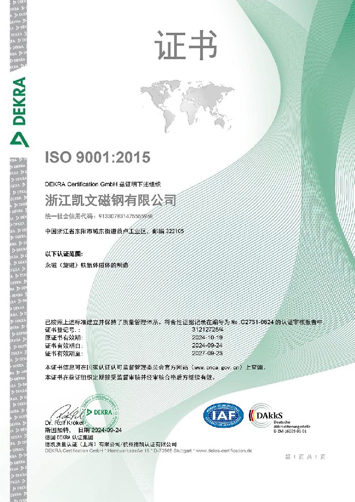 本公司國家高新技術企業,是集科研、生產、銷售為一體的永磁鐵氧體磁性材料專業生產廠家。 公司自主研發生產的永磁鐵氧體超大、超薄、超小瓦形、矩形、環形磁體、高電阻磁體、高穩定、抗干擾、低溫度系數磁體、高磁晶各向異性場磁體等,正批量應用與變頻壓縮機、汽車電機、風力發電機、傳感器及音響、傳動等領域。 公司擁有國內外先進的自動化、智能化制造永磁鐵氧體磁體生產線,充分運用了“機器換人”、ERP、機聯網技術,實現了產品的高技術、高質量、高效率生產。具有年產20000噸鐵氧體預燒料和20000噸產品約3000多種規格產品的生產能力。所生產的產品30%以上達到國際先進水平,50%以上國內領先水平。